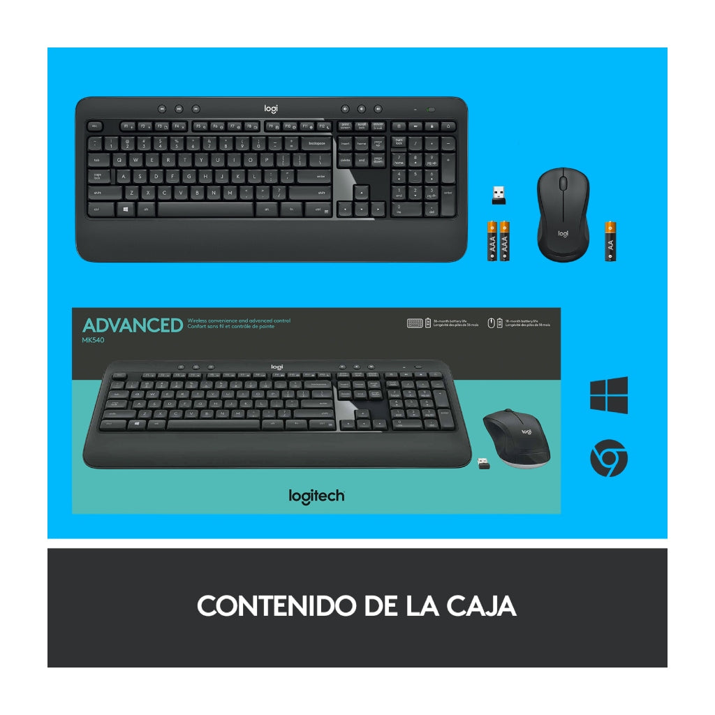 Logitech Kit Teclado y Mouse Inalámbricos MK540, 2 Piezas