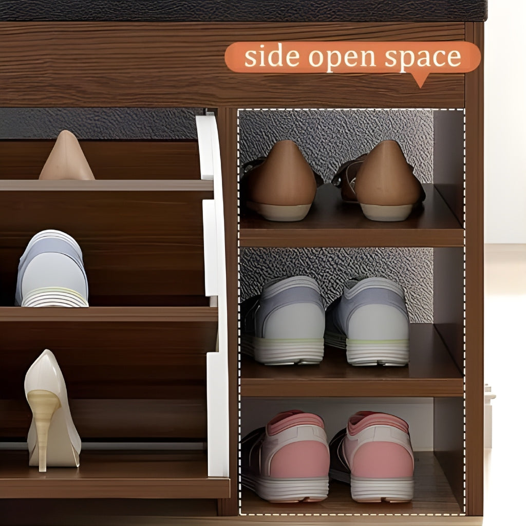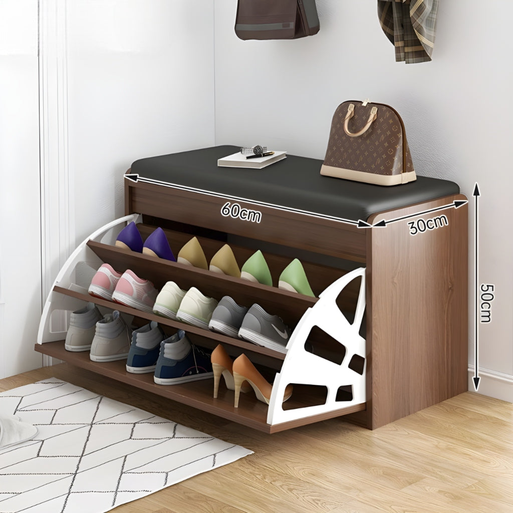 - Combina funcionalidad y estilo con este práctico zapatero con asiento. Perfecto para mantener tus zapatos organizados y, al mismo tiempo, ofrecer un lugar cómodo para sentarte al colocártelos.
