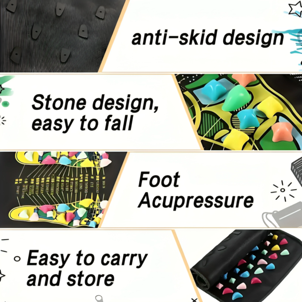 - Estimula puntos reflejos para desintoxicar el cuerpo, mejora la circulación y el metabolismo, alivia dolores, reduce la fatiga muscular y revitaliza las piernas, además de potenciar la digestión y la salud interna.